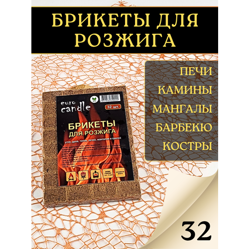 Брикеты для розжига EuroCandle угля, дров, топок, печей, мангалов, грилей, 32 шт