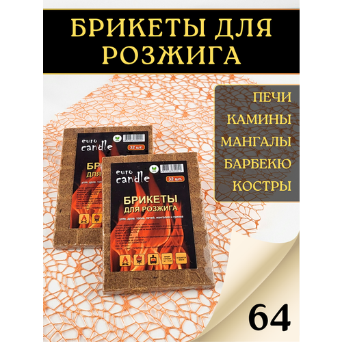 Брикеты для розжига EuroCandle угля, дров, топок, печей, мангалов, грилей, 64 шт (2 упаковки по 32 шт)
