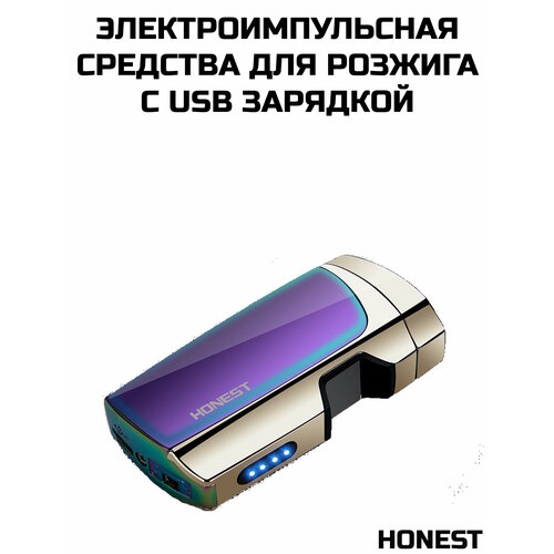 Электроимпульсная зажигалка Honest, цинковый сплав, USB-зарядка, двойной поджиг, синяя "Пустой"