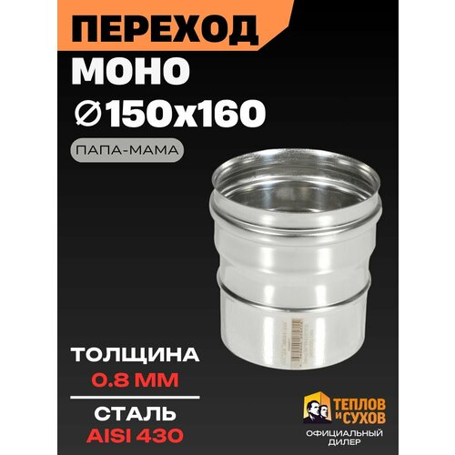Переходник дымохода 150х160, моно переход папа / мама соединитель для труб, нержавейка 0.8 мм