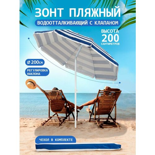 Солнцезащитный зонт пляжный с клапаном, белый/темно-синий/принт "горизонтальная полоса
