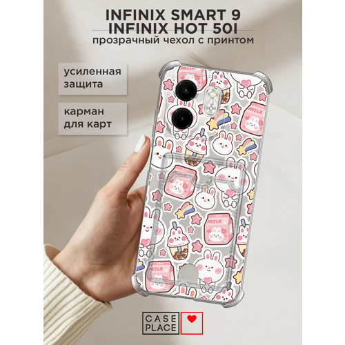 Чехол на Infinix Smart 9/Hot 50i (Инфиникс Смарт 9/Хот 50i) с картой и принтом Sweet bunnies