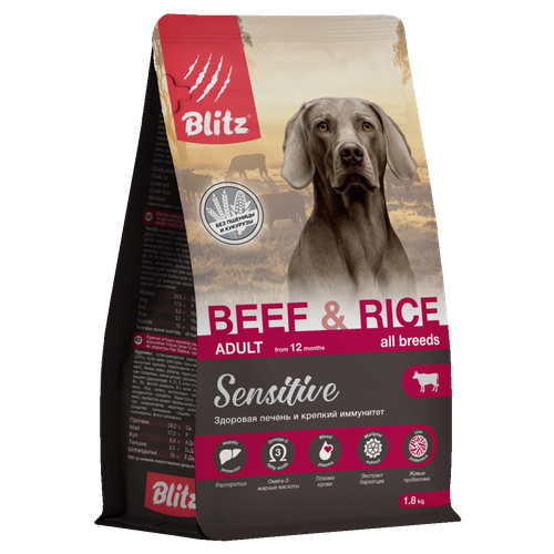 BLITZ SENSITIVE ADULT ALL BREEDS BEEF&RICE д взр соб всех пор с чувствит пищевар говядина рис 15 + 15 кг Blitz