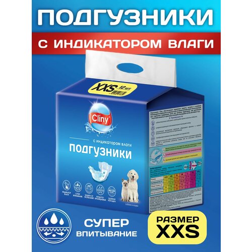 Подгузники Cliny 1-2,5 кг для кошек и собак размер XХS (12шт)