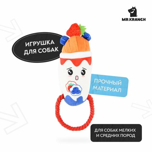 Игрушка Mr.Kranch для собак "Йогурт" плюшевая с канатиком и пищалкой 19 см