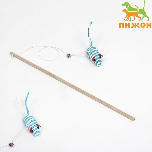 Дразнилка-удочка с мышью на деревянной ручке, голубая/белая 7914020 Пижон