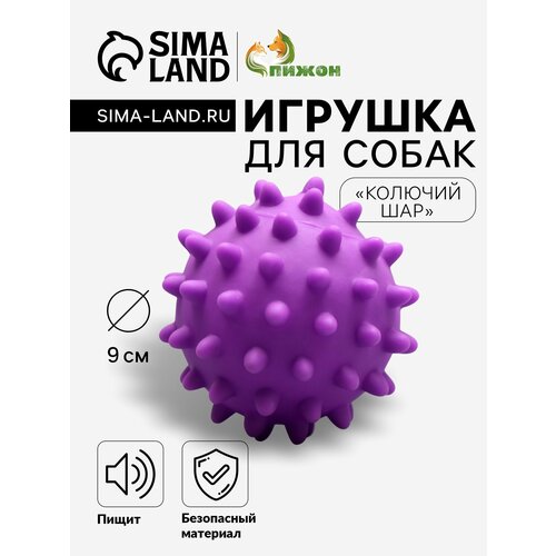 Игрушка пищащая "Колючий шар" для собак, 9 см, фиолетовая Пижон