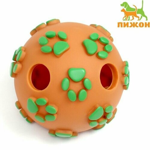 Мячик "Лапки" для собак с отверстиями, 8 см, оранжевый/зеленый Пижон