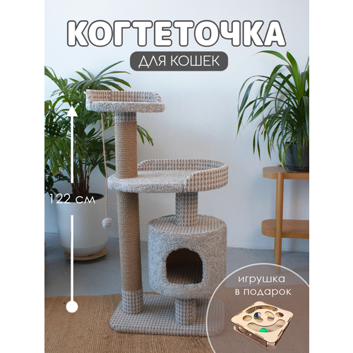 Игровой комплекс для кошек, Моя Котя, "Достучаться до небес", ковролин и джут Моя котя