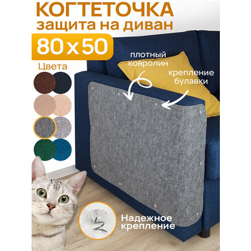 Когтеточка для кошек, 80x50 см, на мебель, с креплением, светло-серая