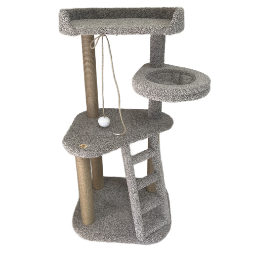 Когтеточка-столбик с удобной лежанкой и игрушкой джутовая ПУШОК Пушок серый