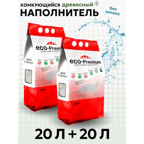Наполнитель ECO Premium BLUE комкующийся древесный 7.6кг/20л + 7.6кг/20л ECO-Premium