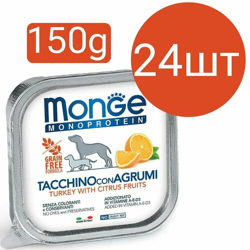 Влажный корм Monge Dog Natural Monoprotein Fruits ламистеры для собак, паштет из индейки с цитрусовыми (24шт по 150г)