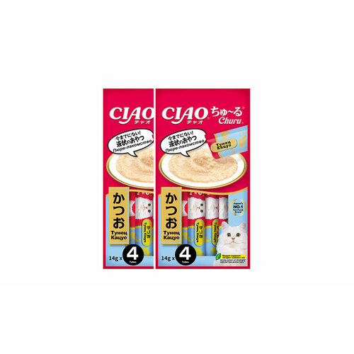 Лакомство-пюре для кошек Inaba Ciao Churu Тунец кацуо 14г*4шт х 2шт.