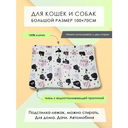 Подстилка-лежак для кошек/собак "Котики на проводах на бежевом" 100х70см