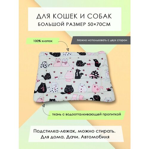 Подстилка-лежак для кошек/собак "Котики на проводах с розовым" 50х70см