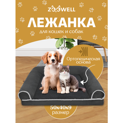 Лежанка для собак и кошек со съемным чехлом ZOOWELL с бортиками, размер M, 50*40*9 см