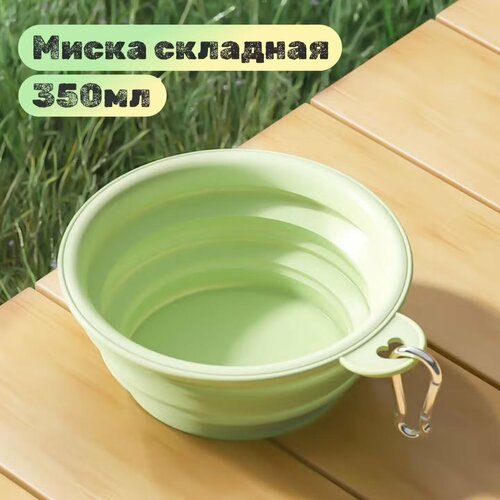 Миска для животных силиконовая складная для кошек и собак, дорожная, прогулочная поилка с карабином, 350 мл, светло-зеленая ZOOWELL
