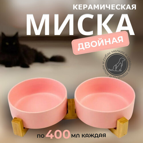 Миска для кошек и собак, розовая, на ножках не глубокая, с защитой от опрокидывания
