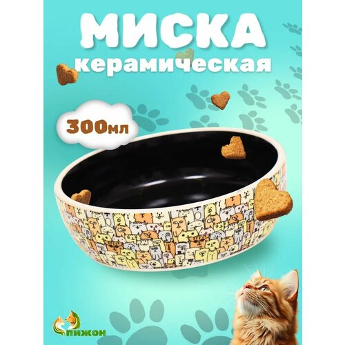 Миска керамическая "Графичная Коты" 200мл, 12 х 3,5 см, бежево-чёрная (1шт.) Пижон