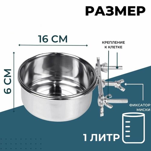 Миска ZooWell Silver 16 см (для крепления на клетку) ZOOWELL