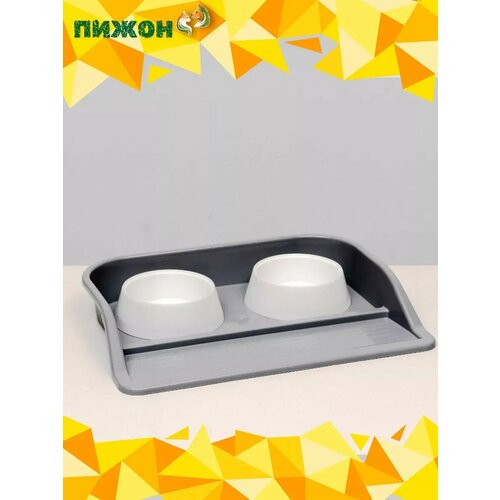 Лоток с мисками ZOO PLAST "Феликс", 0,3 л, 41*30*6 см, серый лоток, белые миски Пижон