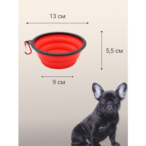 Складная силиконовая миска для собаки с карабином 350мл красный