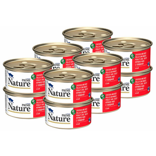 PRIME NATURE CHICKEN & BEEF для взрослых кошек с курицей и говядиной в бульоне банка 85 гр 85 гр х 12 шт