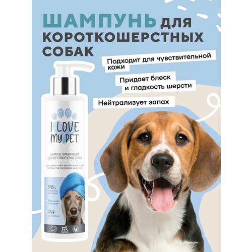 Шампунь для животных для короткошерстных собак I LOVE MY PET гипоаллергенный, бережное очищение с пантенолом и ромашкой, 250 мл I love my pet