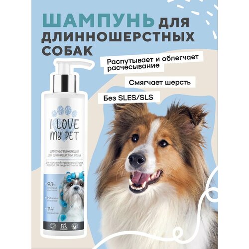 Шампунь для длинношерстных собак I LOVE MY PET гипоаллергенный, мягкое очищение и увлажнение с пантенолом, 250 мл I love my pet