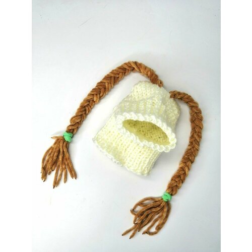 Шапка с косичками для собак, плюшевая, демисезон, размер S нет бренда