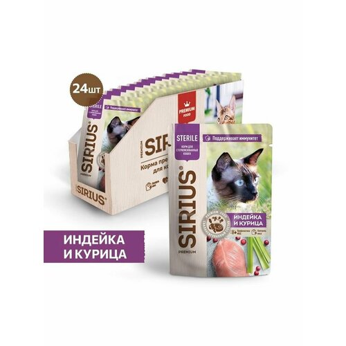 Влажный корм для кошек SIRIUS, для стерилизованных, индейка и курица, 85 г