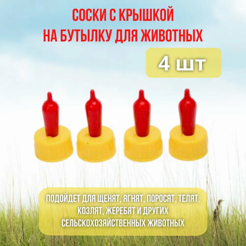 Поилка соска для поения козлят, ягнят, котят, для кормления крольчат, поросят на ПЭТ бутылку 4 шт. Exmork