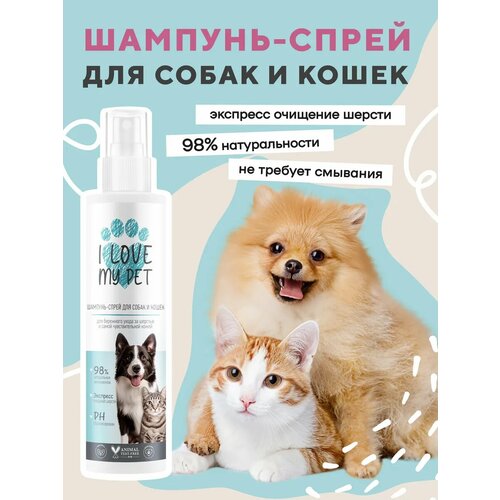 I LOVE MY PET Шампунь экспресс спрей для мытья собак и кошек без воды, не требует смывания, 250 мл I love my pet