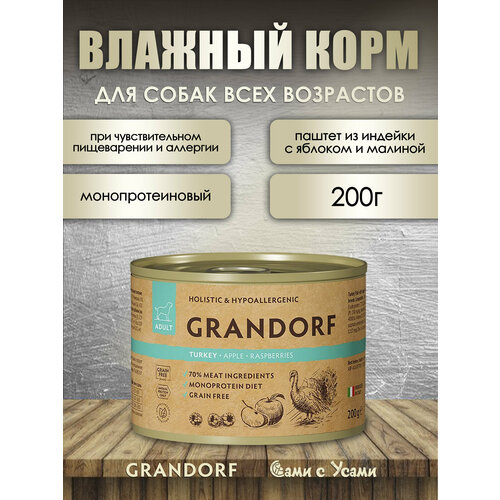 GRANDORF Adult Turkey Корм влаж. паштет из индейки с яблоком и малиной д/собак конс.200г Grandorf