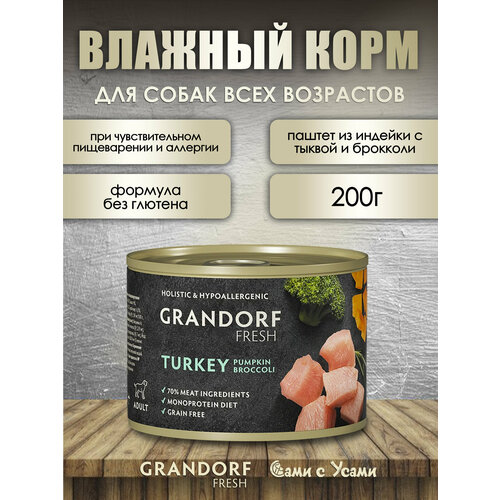GRANDORF FRESH Adult Turkey Корм влаж. паштет из индейки с тыквой и брокколи д/собак конс.200г Grandorf