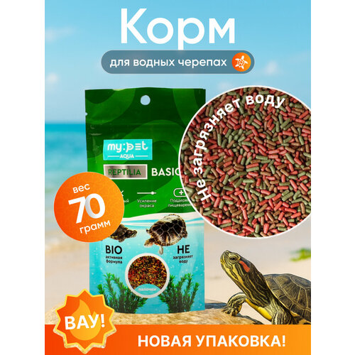 Корм My Pet "Reptilia Basis", для всех видов черепах, палочки, 70 г