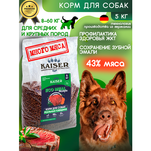 Сухой Корм для собак с говядиной, 5кг KAISER EcoMeal ЭКСТРА