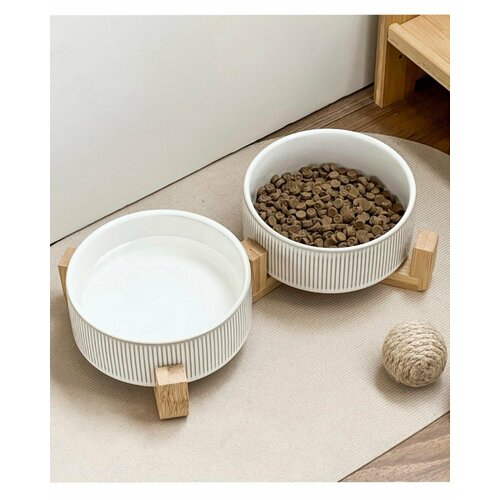 Миска для собак керамическая белая 0,6л 2шт на подставке низкая MALELOON