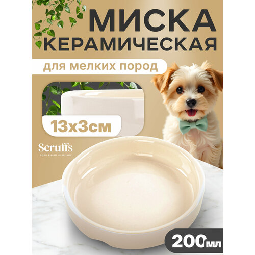 Миска керамическая для мелких пород собак и кошек SCRUFFS "Icon Soucer", кремовая, 13х13х3см, 200мл (Великобритания) Scruffs