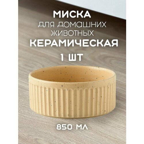Миска керамическая для домашних животных, круглая 15см х 6см, 850 мл бежевая MALELOONZOO