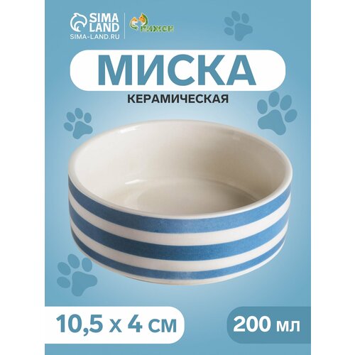 Миска керамическая для животных "Полоски" 200 мл, 10,5 х 4 см, синяя Пижон