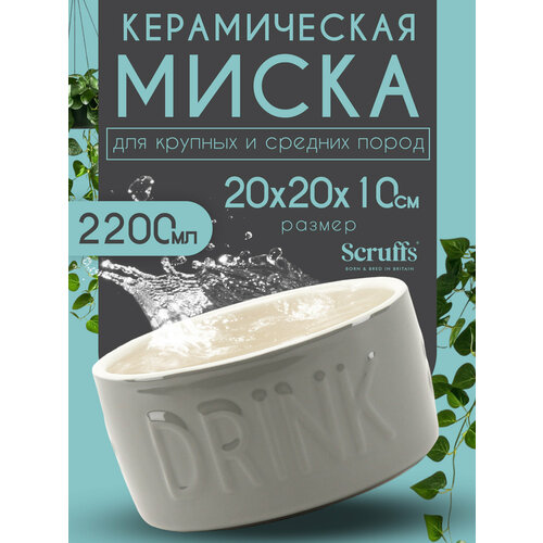 Миска керамическая для собак SCRUFFS "Classic Water", серая, 20х20х10.5см, 2200мл (Великобритания) Scruffs