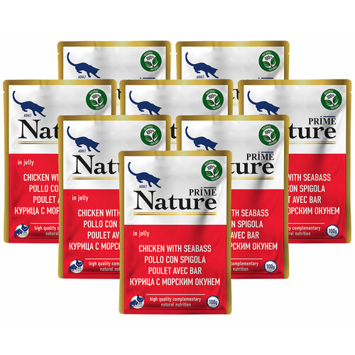 PRIME NATURE CHICKEN & SEABASS для взрослых кошек с курицей и морским окунем в желе пауч 100 гр NEW 100 гр х 8 шт