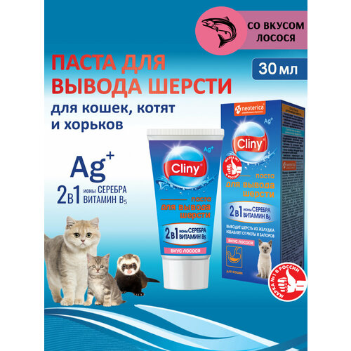 Кормовая добавка Cliny Паста для выведения шерсти со вкусом лосося 50 г 30 мл