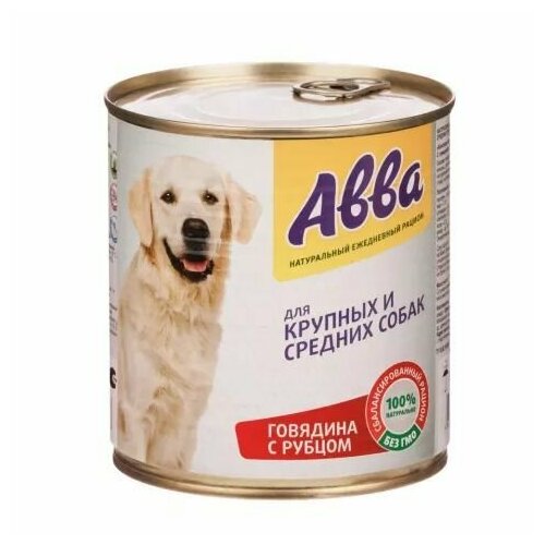 2 ШТ Aвва Влажный корм (консервы) для собак средних и крупных пород, с говядиной и рубцом, 750 гр. Авва