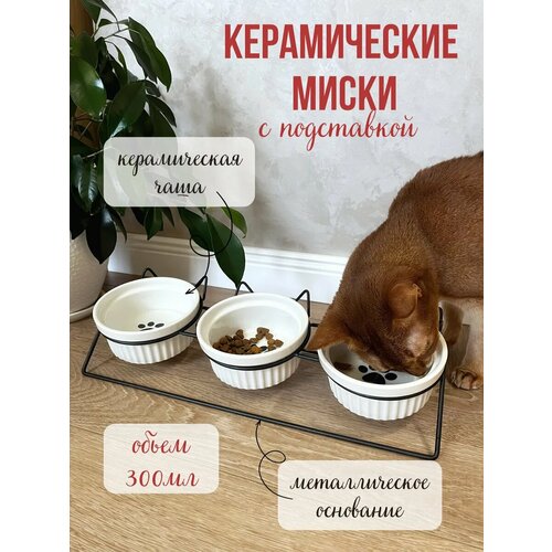 Миска для животных керамическая тройная с ушками Qalla