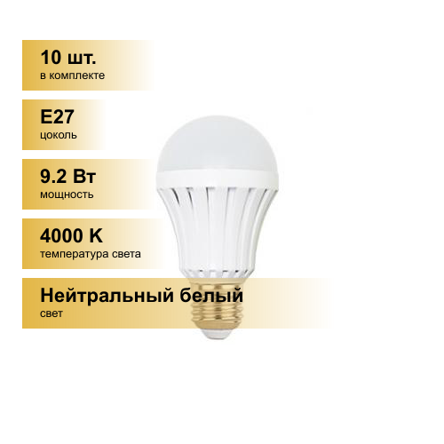(10 шт.) Светодиодная лампочка Ecola ЛОН A60 E27 9.2W (9W) 4000K 4K 110x60 Light TK7V92ELY