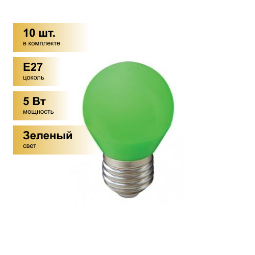 (10 шт.) Светодиодная лампочка Ecola шар G45 E27 5W Зеленый матов. 77x45 K7CG50ELB