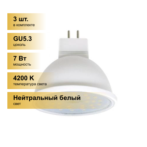 (3 шт.) Светодиодная лампочка Ecola MR16 GU5.3 220V 7W 4200K 4K 48x50 прозр. M2SV70ELC